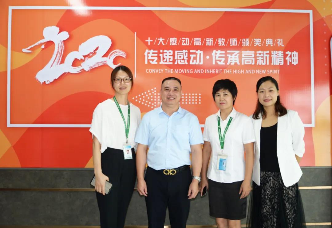 ▲朱霞老師與鄧寧校長、人力資源總監(jiān)盧雁紅合影