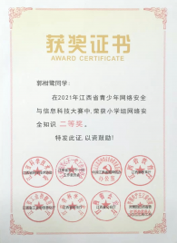 喜報 !我校在江西省2021年青少年網(wǎng)絡安全與信息科技大賽中榮獲“小
