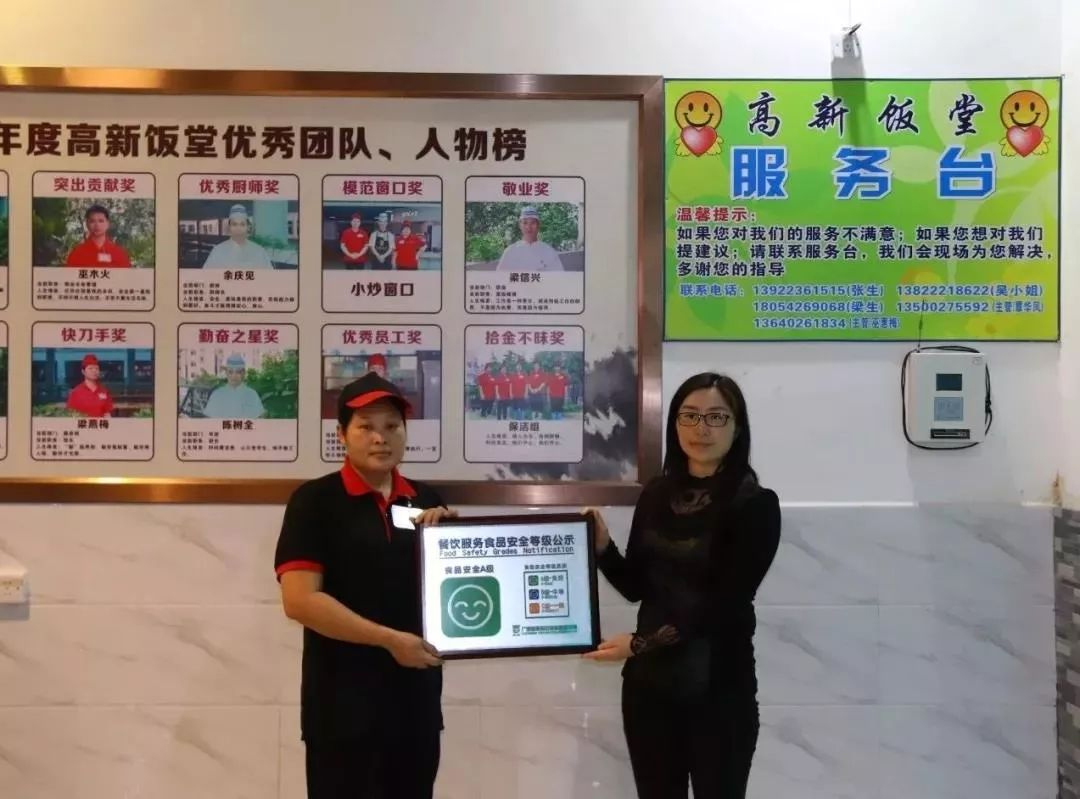 高新技校的兩所食堂已經(jīng)連續(xù)幾年被廣東省食品藥品監(jiān)督管理局評(píng)為“餐飲服務(wù)食品安全量化分級(jí)管理A級(jí)示范食堂”,學(xué)校所有的原料供應(yīng)商都經(jīng)公開(kāi)招標(biāo)進(jìn)行采購(gòu),保證食品安全和質(zhì)量。從食材采購(gòu)到加工、供餐進(jìn)行全過(guò)程數(shù)字化監(jiān)控。