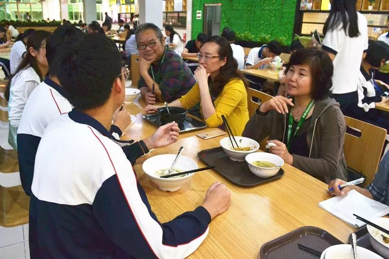 “你們喜歡吃什么菜?。?rdquo;肖校長(zhǎng)親切的問(wèn)道。“我最?lèi)?ài)吃雞扒飯”“我愛(ài)吃鐵板飯”“我們把只吃肉,不愛(ài)吃青菜的同學(xué)叫做玉皇大帝(粵語(yǔ)諧音)”大家邊吃邊聊,校長(zhǎng)被逗得哈哈大笑。