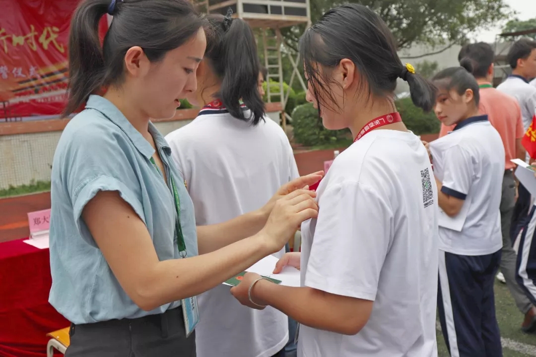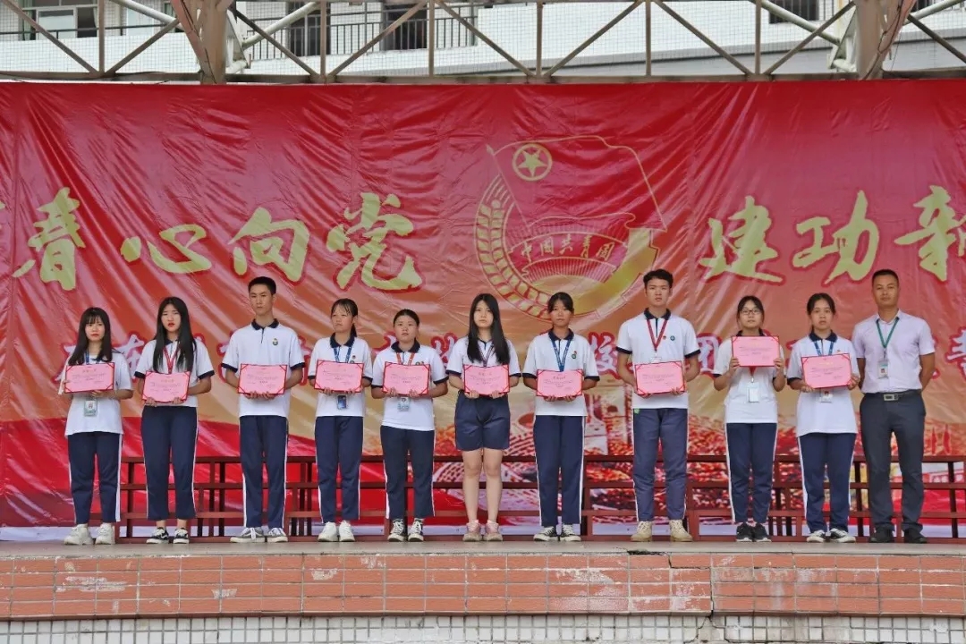 廣東省高新技術高級技工學校新團員入團宣誓儀式暨優秀團組織表彰大會于2019年5月27日16:10在西區足球場隆重舉行。參加本次大會的領導有:文建友副校長、學生處曾成處長、學生處陳偉副處長、團委書記劉榮榮、汽車工程系鄭大國主任、藝術與計算機系王慶有副主任、經貿系姚幸連副主任。參加大會的還有在校1833名團員。