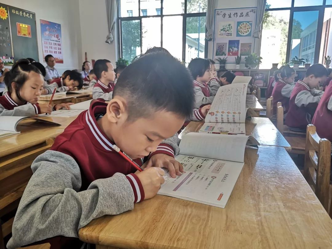 在朗朗的書聲中,丁惠臻老師走進了一(2)班的教室。丁老師用“金木水火土”作為小組名稱,既鞏固了舊知識,又調(diào)動了孩子的積極性。通過講解象形文字,孩子們對文字產(chǎn)生敬畏之心。讓生字開花又豐富了學(xué)生的詞匯量。運用田字格“九點式”書寫方法,指導(dǎo)學(xué)生規(guī)范書寫。
