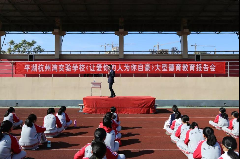 家長會第二站在學(xué)校大操場——感恩勵志演講。我校特邀善朝教育集團(tuán)全國巡講團(tuán)的周廷諭老師,為初一學(xué)生及其家長舉行了一場“讓愛你的人為你自豪”的大型家校共育報告會。
