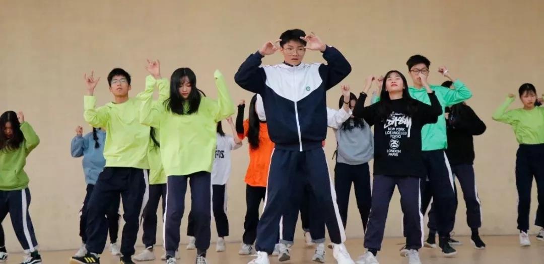 在課上她們認真努力,對著鏡子一個動作一個動作地過關(guān) ,為了跟上節(jié)奏一遍一遍的喊拍子練習,會長郭麗碧同學說:“我們整天嘻嘻哈哈的,總之有我們在氛圍就不會尬,社團人雖少,但我們很用心,很團結(jié),很開心!當然要是來些小哥哥會更好哈!加油!