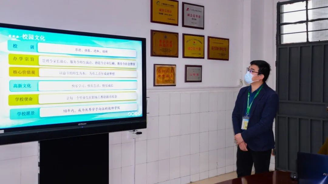 王磊校長(zhǎng)助理介紹學(xué)校開(kāi)設(shè)18個(gè)熱門(mén)專(zhuān)業(yè)、培養(yǎng)符合企業(yè)需求的專(zhuān)業(yè)人才等方面的現(xiàn)狀。王忠月副校長(zhǎng)介紹高新升學(xué)部從今年春季開(kāi)始招生,提供多元化升學(xué)途徑,幫助學(xué)子圓大學(xué)本科夢(mèng)。