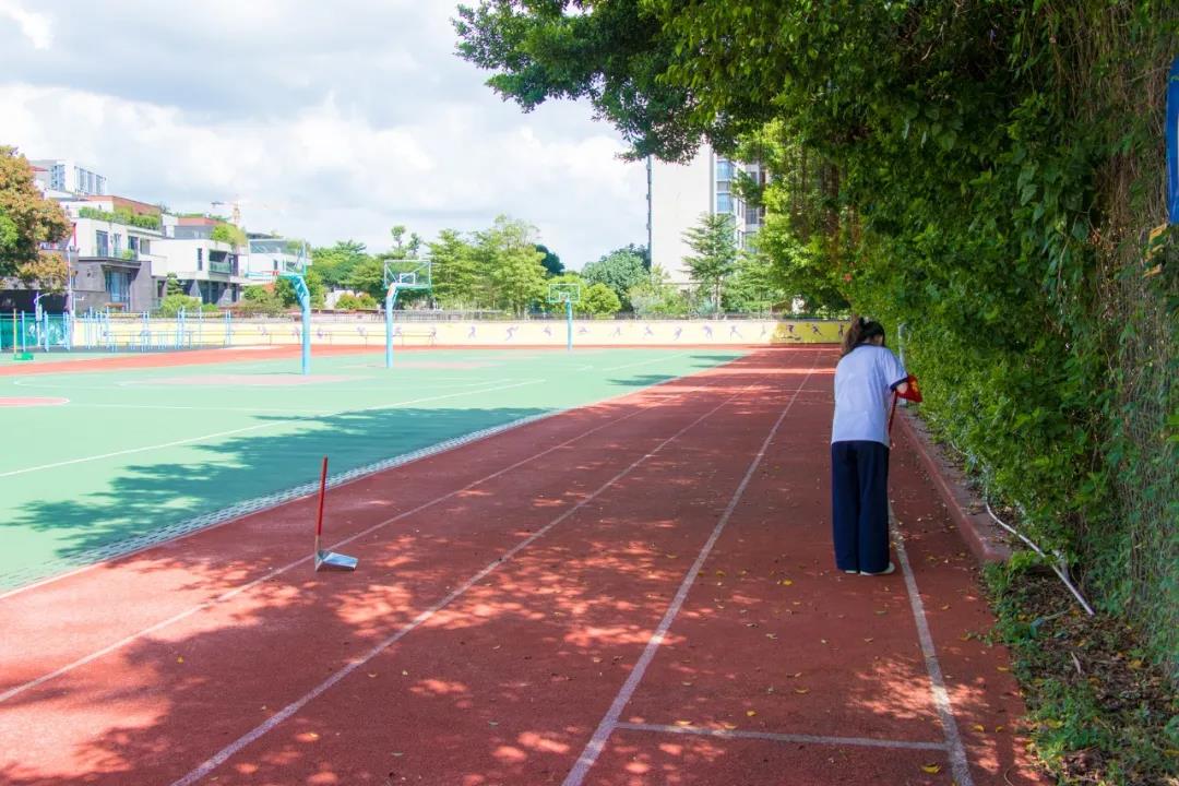 基本上,同學們只要看見有落葉和雜草,都會主動清理,非常自覺。在勞動中學會愛護校園環(huán)境,從我做起,學會自我管理、自我教育,提高同學們的責任感和公德心,是三自教育的主旨。