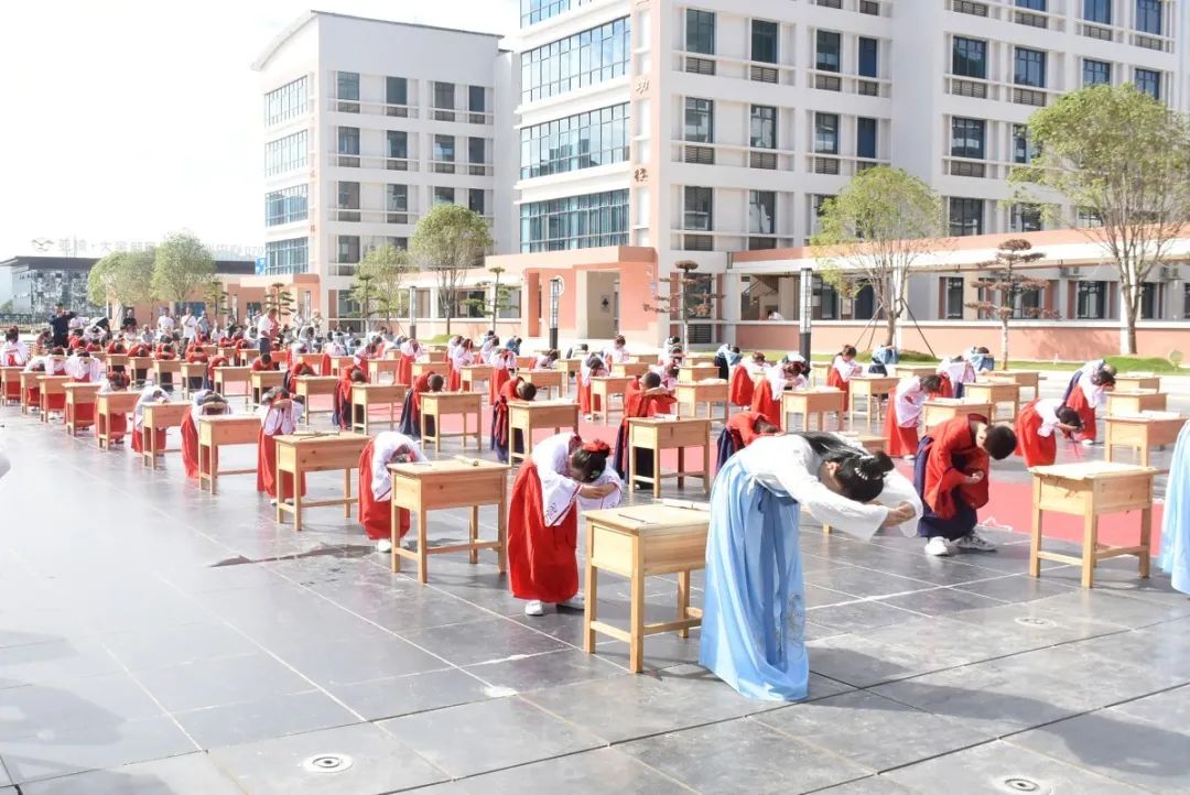 中國是禮儀之邦,素來崇尚“禮”先行。古人一生有四大重禮:開筆禮、進(jìn)階禮、感恩禮、狀元禮。開筆禮則是中國古代人生的首次大禮,古稱“啟蒙禮”、“破蒙禮”,是我國古代對少兒開始識字習(xí)禮的一種啟蒙教育形式。大余衡水實(shí)驗(yàn)學(xué)校通過莊重的“開筆禮”儀式,讓步入小學(xué)的孩子感受到入學(xué)是人生的一件大事,是步入知識殿堂、走向成才的起點(diǎn)。
