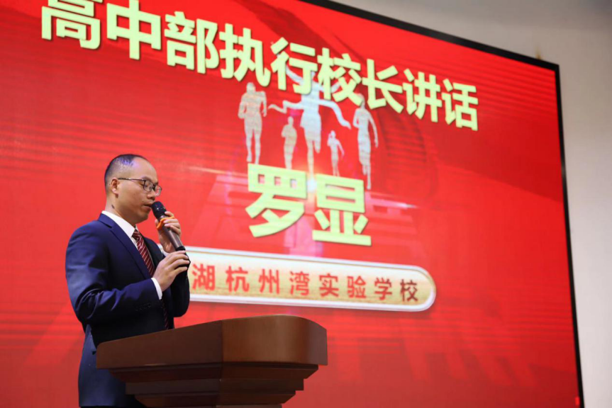 高中部執(zhí)行校長羅顯發(fā)言,羅校長強調(diào)三點:一、堅定首考必勝的信念;二、嚴格按照計劃復習;三、每一個人都要竭盡全力。羅校長以獵狗和兔子的寓言故事告訴同學們盡力而為與竭盡全力的區(qū)別,激勵同學們要在首考竭盡全力,用拼搏決勝高考,提前奠定高考基石!