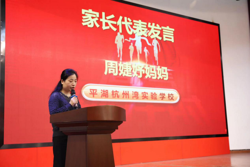 在這光榮而自豪的日子里,不僅是高三的學生們對未來充滿希望與緊張,家長們同樣如此。高三三班同學周婕妤的家長作為家長代表,為所有孩子送來問候和鼓勵。周媽媽說:“家長和老師都是孩子們堅強的后盾。”表達了對于學校管理制度的信任與支持,也表達了對高三同學們的殷切希望。