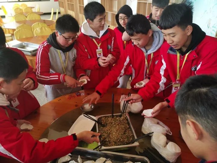 為了緩解學生們的學習壓力,增進學生間的交流,讓留校生在學校也能感受到家一樣的溫暖,我校初中部于11月29日在學校餐廳二樓為孩子們精心準備了一場“包餃子”活動。