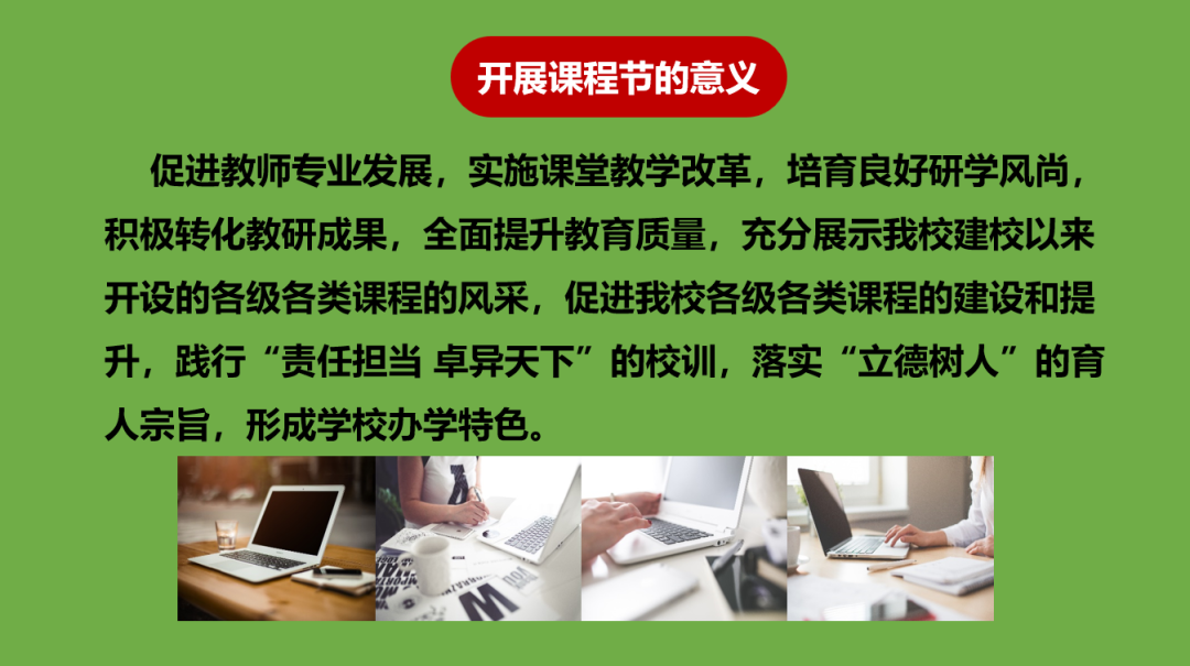 吳燕校長首先從課程節的意義出發,讓大家明確了課程節開展的重要意義。然后從國家級課程展示、地方課程展示及校本課程展示、大課堂展示、優秀教研活動展示、班主任班會課比賽、家長講堂、優秀校本課程匯展及匯演等七個方面進行了具體的闡述,讓大家找到了落實的方向。最后吳燕校長對本次課程節的圓滿進行表達了衷心的祝愿和滿滿的期待。她表示:本次課程節為每位教師提供了學習、交流、展示的平臺,最后將給大家一個精彩紛呈的課程“盛宴”。課程節期間,教師、家長、學生即是演員,又是觀眾。通過舉辦課程節,學生是最大受益者,感受形式多樣的課程形式,克服求知的倦怠情緒,增強的好奇心的探究欲望,提高了學習力,為學生終生發展奠定基礎。