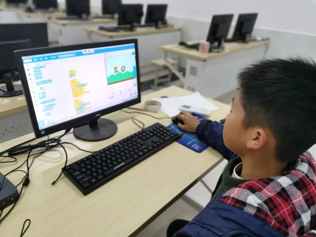 為了更好地提升學(xué)生的信息素養(yǎng),我校開設(shè)少兒編程大課堂,孩子們通過項目式開展和小組合作的方式,使用圖形化編程語言Scratch創(chuàng)作,理解順序、并行、重復(fù)結(jié)構(gòu)、偵測條件等計算思維中的重要基礎(chǔ)概念和算法知識,既鍛煉了邏輯思維能力和創(chuàng)新能力,也增強了其不斷試錯和解決問題的能力。