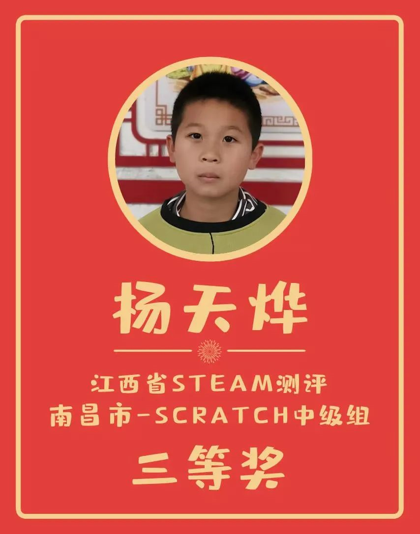 通過以賽促學(xué),以賽促教的方式,孩子們參加了由藍橋杯大賽組委會與美國普林斯頓多文化教育研究中心合作推出的青少年編程比賽(江西省STEAM測評-南昌市-Scratch初級組和中級組),并取得優(yōu)異成績,有7人獲獎并成功進入省決賽,期待孩子們下一輪更深入的切磋交流。
